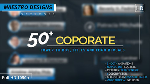 Coporate Lower Thirds Titles And Logos Pack - Project for After Effects (Videohive) After Effects Version CS5.5 - CC 2015 | 1920x1080 | 14 July 16 | No plugins | 119MB |