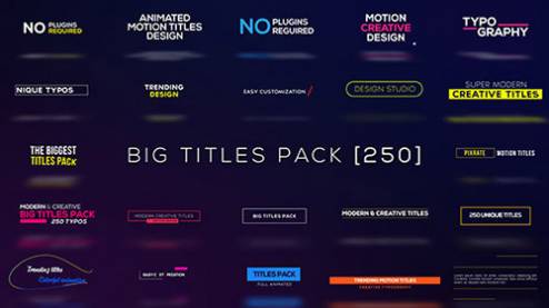 Big Titles Pack [250] - Project for After Effects (Videohive) After Effects Version CS5.5 - CC 2015 | 1920x1080 | 5 February 16 | No plugins | 100mb |