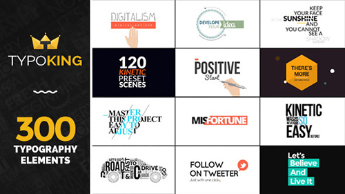 TypoKing | Pack of Titles & Typos - Project for After Effects (Videohive) After Effects Version CS5 - CC 2014 | Resizable | 4 May 15 | No plugins | 173mb |