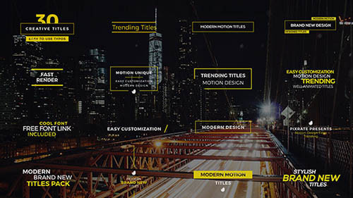 30 Brand New Titles - Project for After Effects (Videohive) After Effects Version CS5.5 - CC 2015 | 3840x2160 | 16 September 16 | No plugins | 34mb |