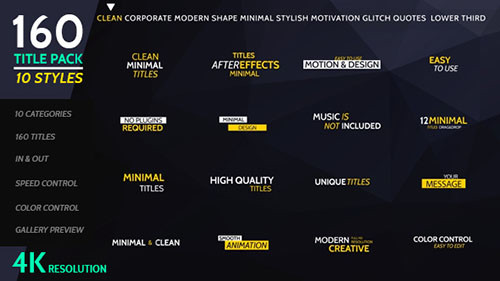 160 Titles Pack Different Styles - Project for After Effects (Videohive) After Effects Version CS6 - CC 2015 | Resizable | 4 August 16 | No plugins | 134MB |